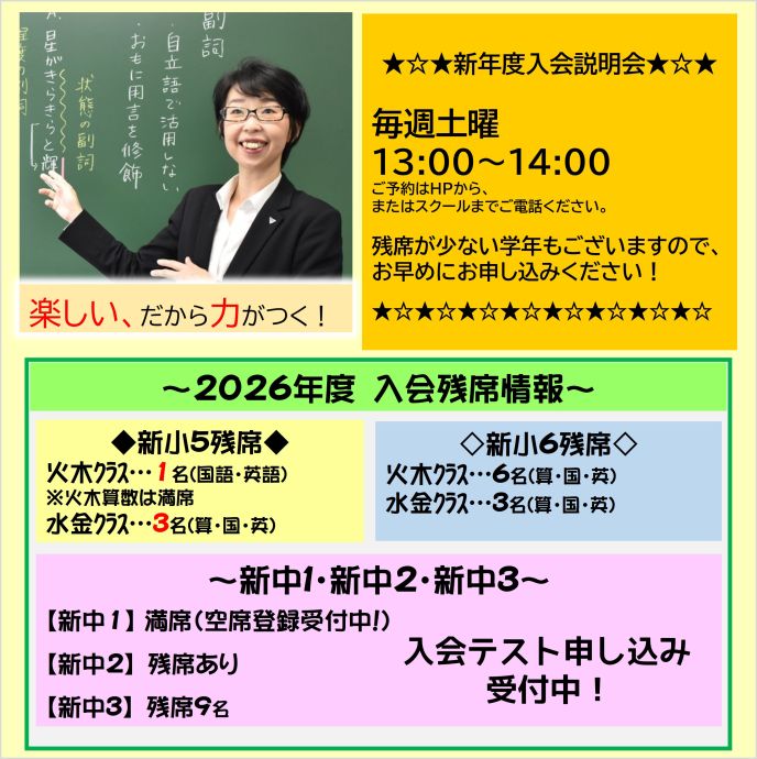 ☆2026年度入会残席情報☆