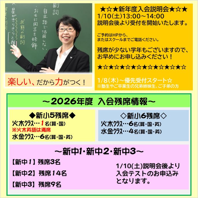 ☆2026年度入会残席情報☆