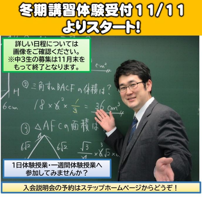 ▼ステップの新年度の入会受付は1月からとなっていますが、新小5(現小4)生の入会予約を現在受付中です。