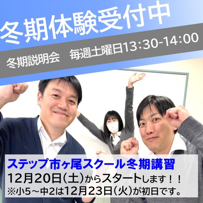 冬期説明会は【12/20(土)12:00~12:30 】です。