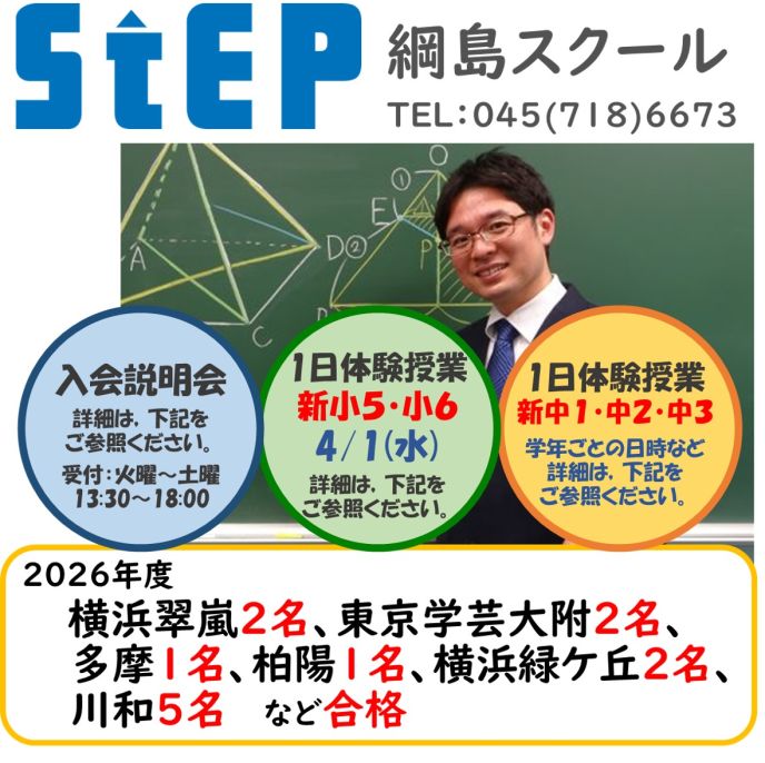 ご希望の方はステップ綱島スクールまでお電話(045-718-6673)ください。