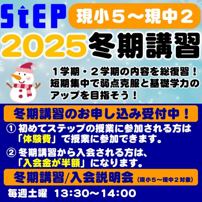 ▼ステップの新年度の入会受付は1月からとなっていますが、新小5(現小4)生の入会予約を受付中です。