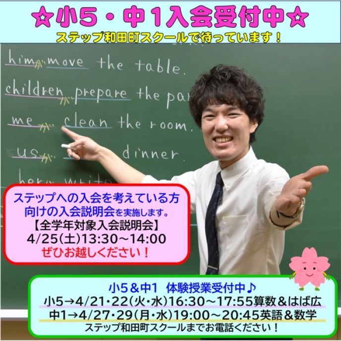 4/25(土)13:30~14:00【小5~中3対象】入会説明会