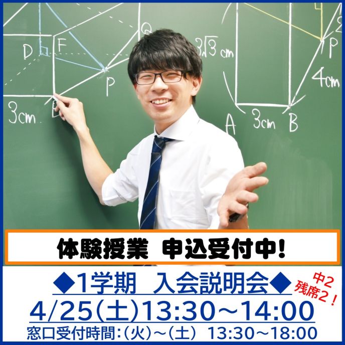 ※定期テスト対策時は中学校別授業になるので、通塾曜日が変わることもあります。