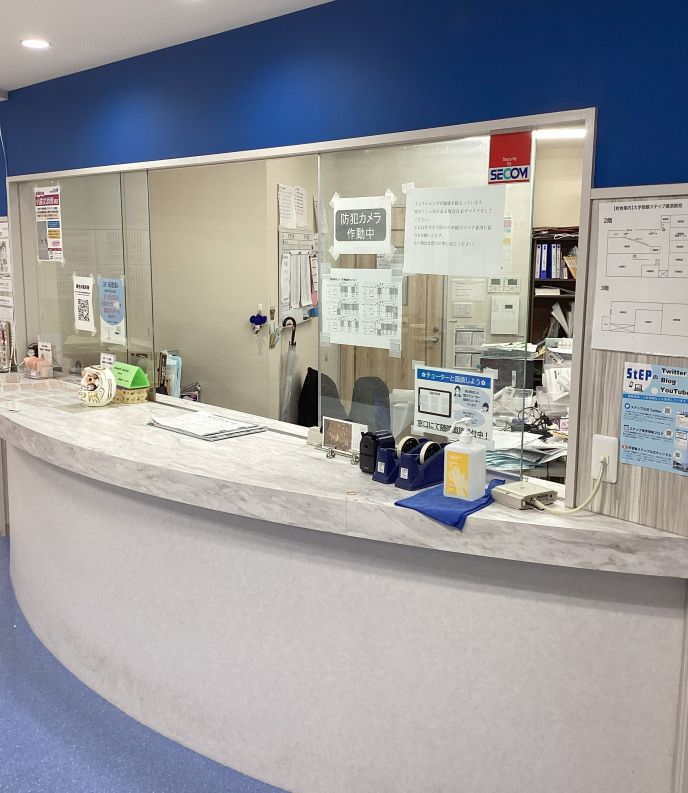 2階(受付)、3階がSTEPです。駐輪場もあるので、自転車通学の生徒も通いやすくなっています。