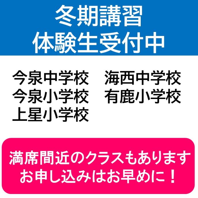※冬期講習体験生の入会状況によって、残席が変わります。