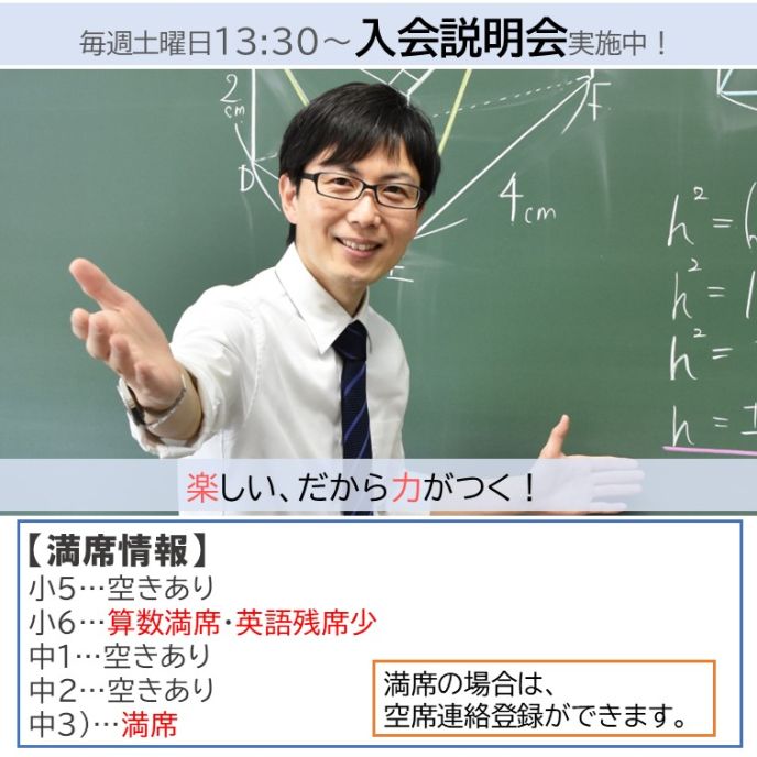 小6…算数満席 空席連絡登録受付中