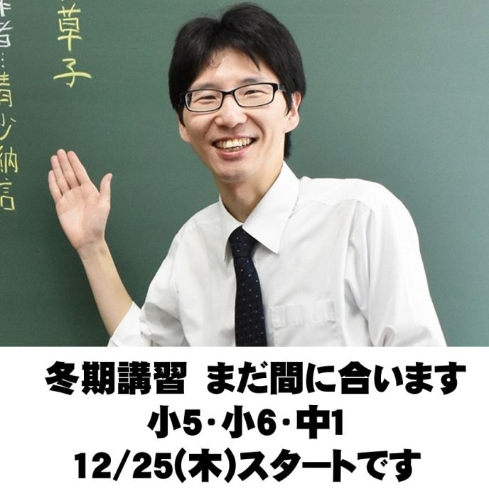 小5生・小6生・中1生は12/25(木)から冬期講習をスタートします。。満席となり次第受付を終了いたします。スクールまでお問い合わせください。