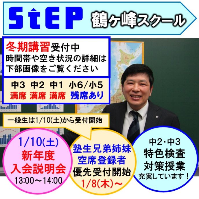 塾生兄弟姉妹生・空席登録者 1/8(木)から