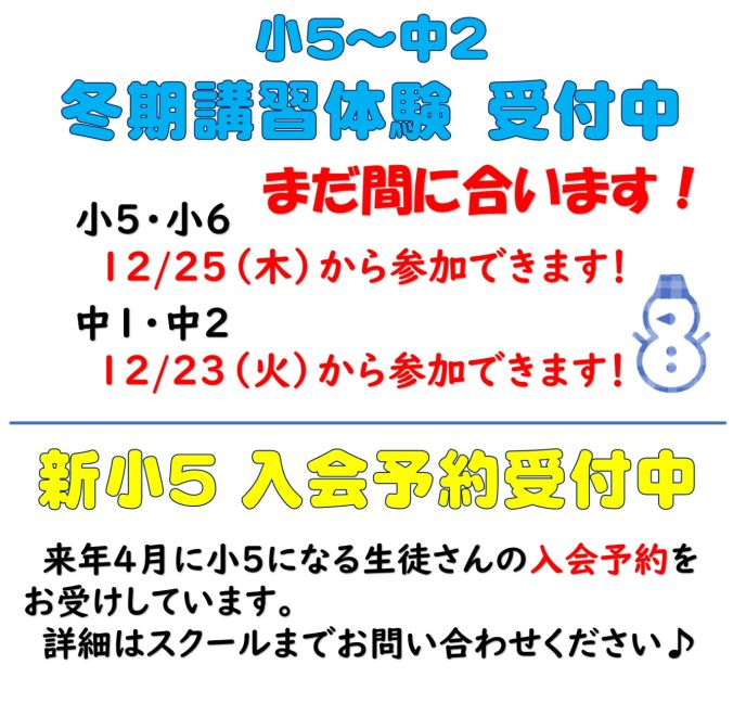 来年4月に小5になる生徒さんの入会予約を受付中です。