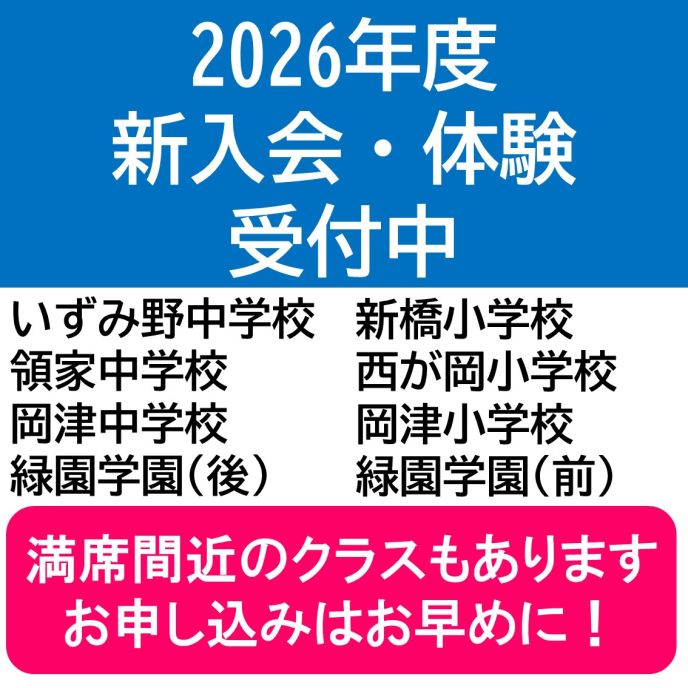 新中3~新小5対象 4月25日(土) 13:30~14:00