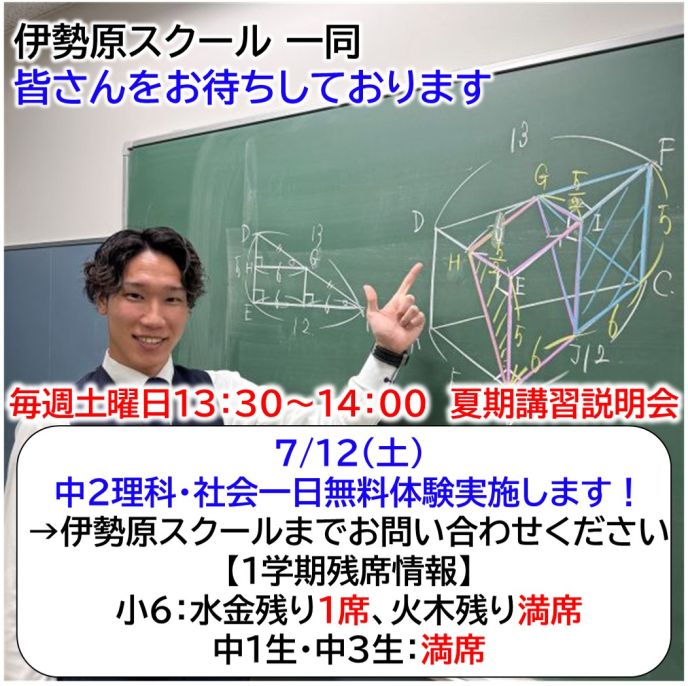 ・中2生…火木土クラスor水金土クラス【残り17名】
