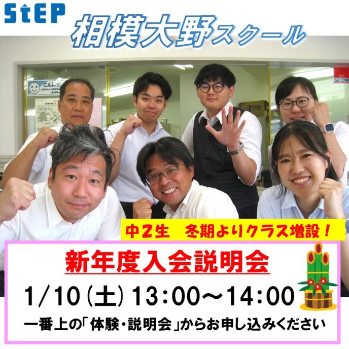 新小5~新中3の方でステップにご入会希望の方、ご興味がある方は、まずは1/10(土)の新年度入会説明会にお越しください。