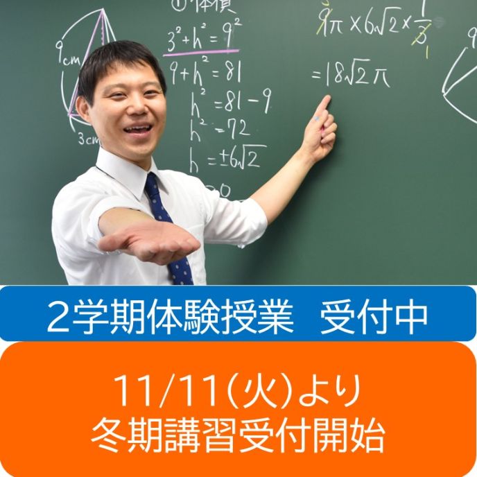 11/11(火)より冬期講習のお申し込みが始まります。あいにく中2生はいっぱいですが、小5、小6、中1は空きがあります。この機会にぜひステップの授業を体験してみませんか。お申し込みはスクールまでお願いいたします。