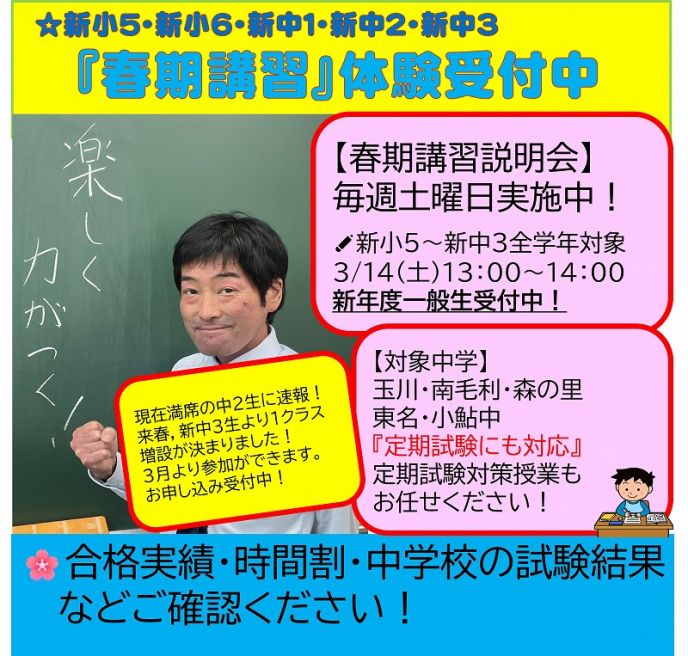 小5・小6・中1生の塾生の春期講習費は無料です。
