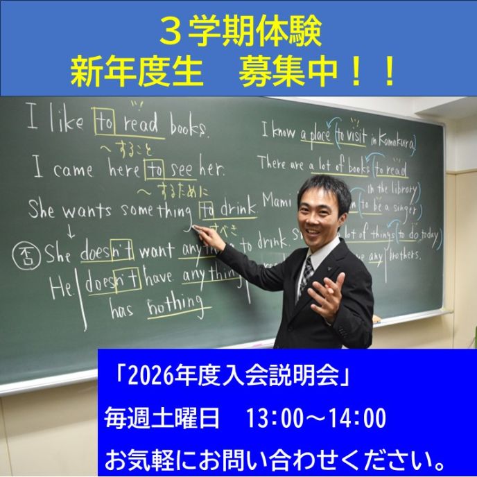 ※中学生の定期テスト対策の期間は体験授業を行っておりません。