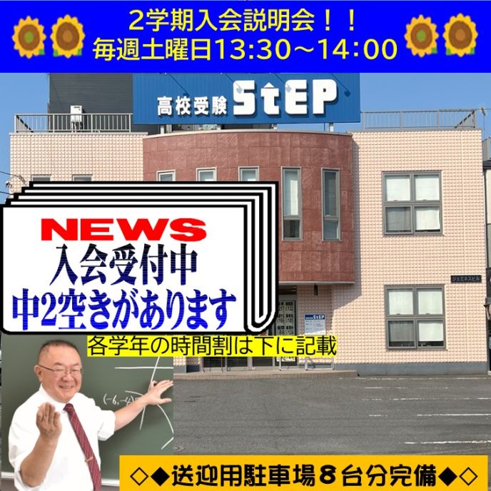 ※このHPの空席情報から変わっている場合もありますので、事前にお電話で空席の有無をご確認のうえ、ご来校ください。