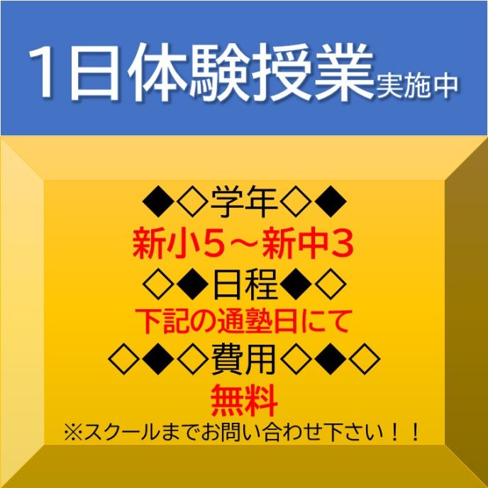 ※曜日はクラス分けテストで決定します。小6生と違い希望制ではありませんのでご注意下さい。