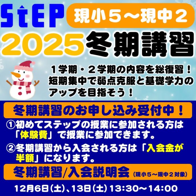 ・ご家族がステップの塾生または卒業生の方の優先受付期間