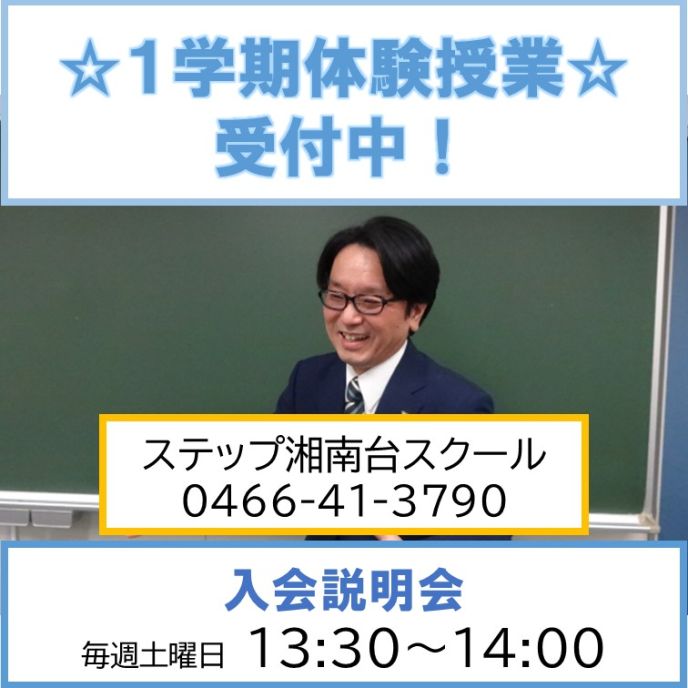 現在1学期通常授業の体験受付中です!1日体験や1週間体験ができます。塾を検討されている方、ステップで一緒に頑張ってみませんか? お申込みはスクール窓口にて承ります。新年度説明会もございます。ご質問などはお気軽にお電話ください。