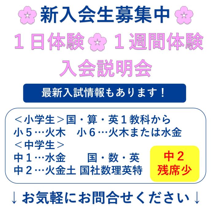 <火金>19:00~21:30 国語・数学(中2式の計算)・英語