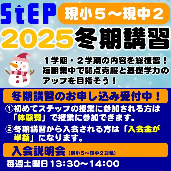 小6:火木クラス→残3(3学期から定員16→20に増えます!)