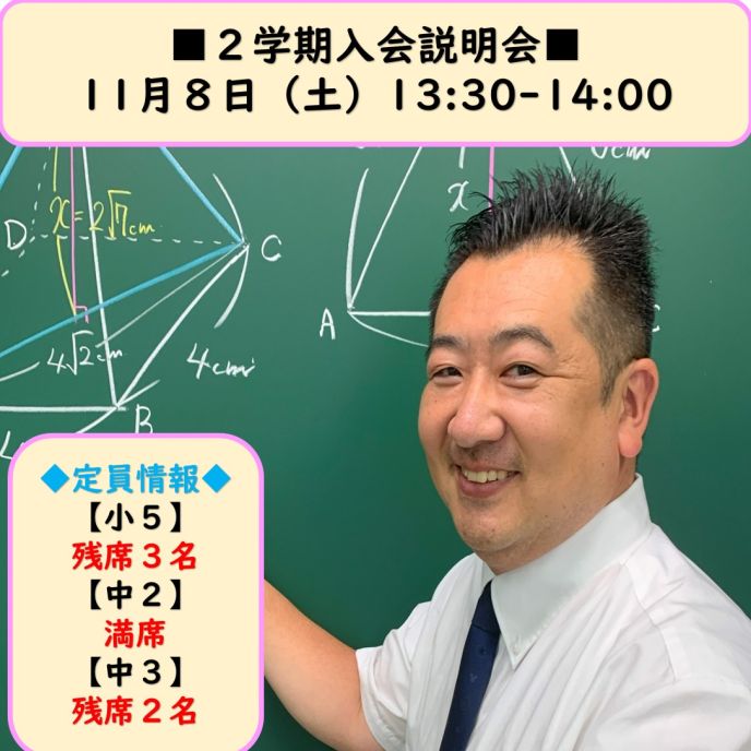 ◎11/8(土) 2学期入会説明会 全学年対象(30分)