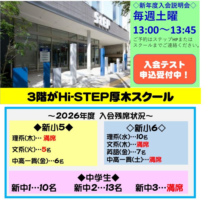 ハイステップ厚木スクールの新年度入会説明会予定です。