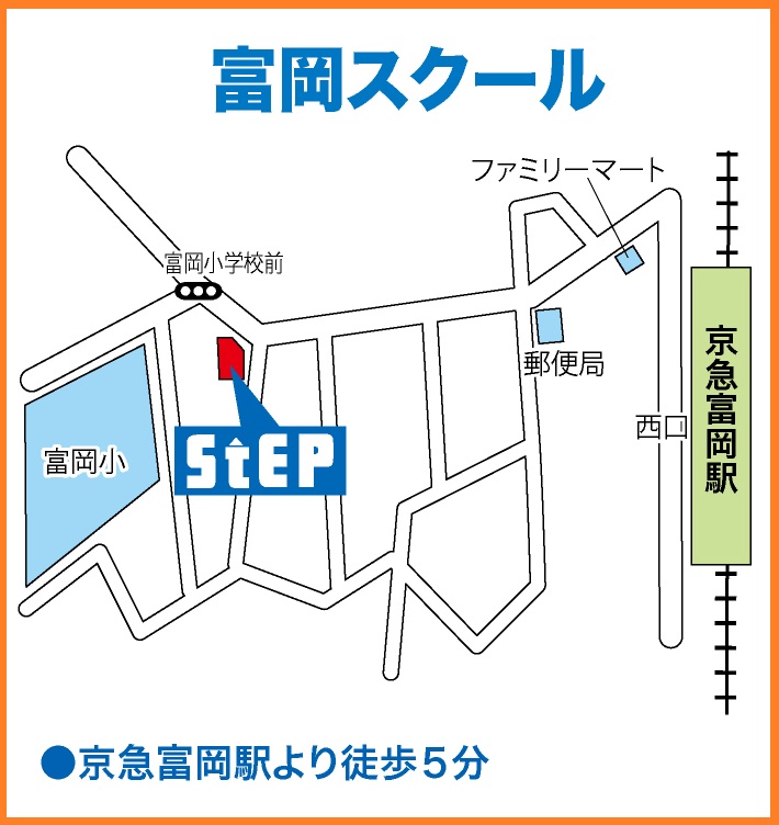 京急富岡駅から徒歩5分、「富岡小学校前」交差点そばです。