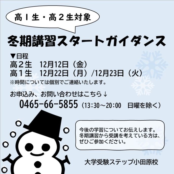 ▼冬期講習(12/13~)・受講相談会のご案内▼
