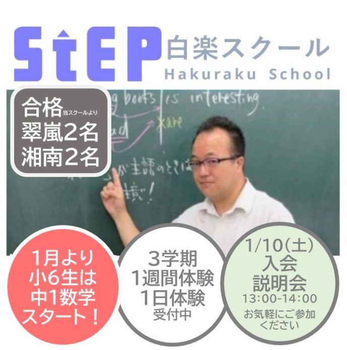 ステップの新年度の入会受付は1月からとなっていますが、新小5(現小4)生の入会予約を10/18(土)からお受けいたします。