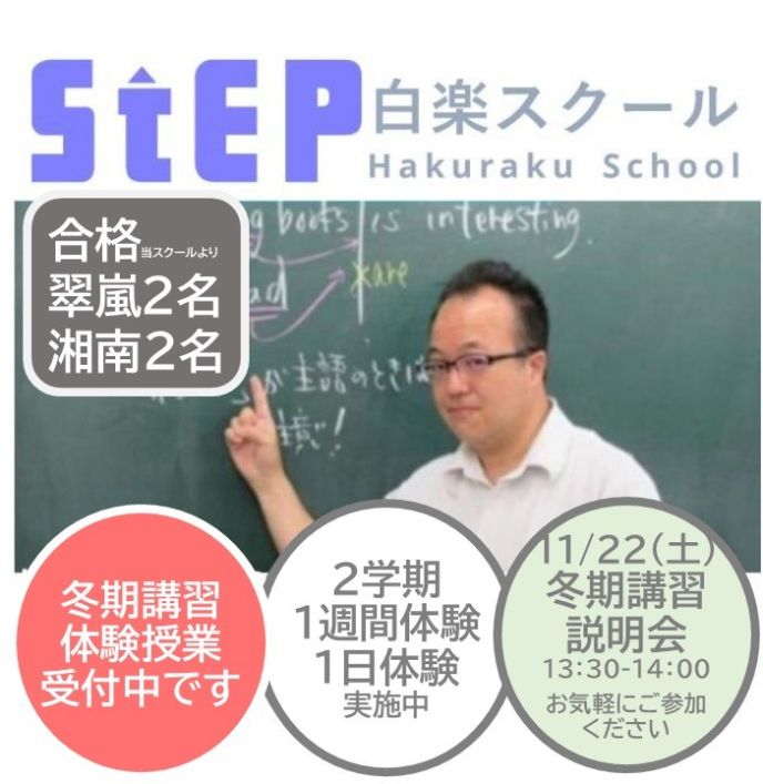 ※中1・中2のみなさんはさらに冬期講習前の12月の授業(12/2~)を「すべて無料」で受講できるフリー体験を実施中です!
