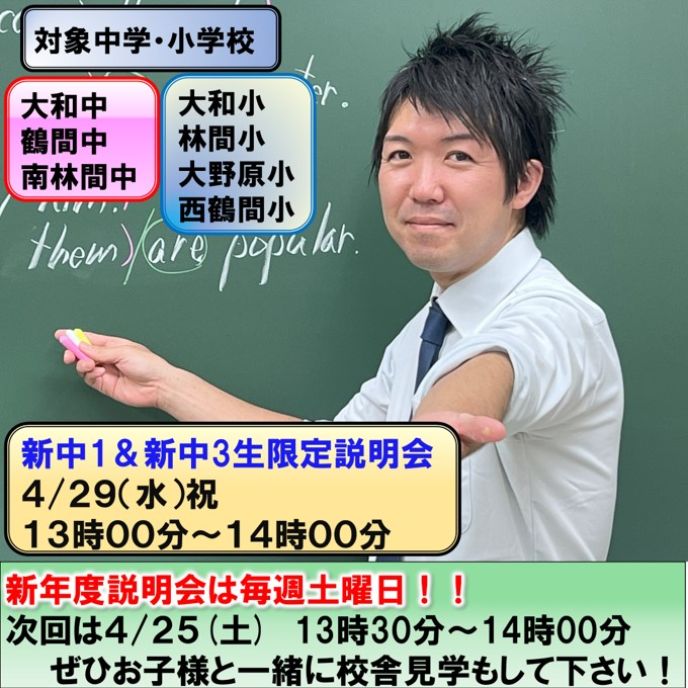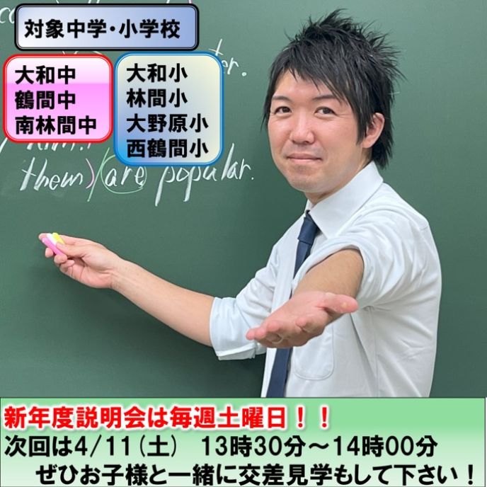 ◆新年度入会受付中。説明会は毎週土曜日、13時30分~14時です。◆