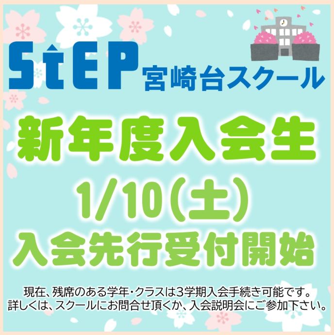 ◆1/17(土) 新年度入会説明会(13:00~) 新中1~新中3対象