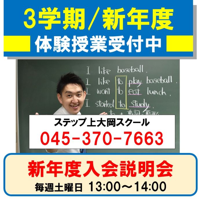 志望校合格に向けた一歩を踏み出してみませんか?ぜひ一度ステップの授業を体感してみてください!体験授業を希望される方はお気軽にお問い合わせください。定員に達した学年は空き待ち登録をしたうえで、お待ちいただいております。上永谷スクール、井土ヶ谷スクール、杉田スクールに通いながらお待ちいただくこともできます。