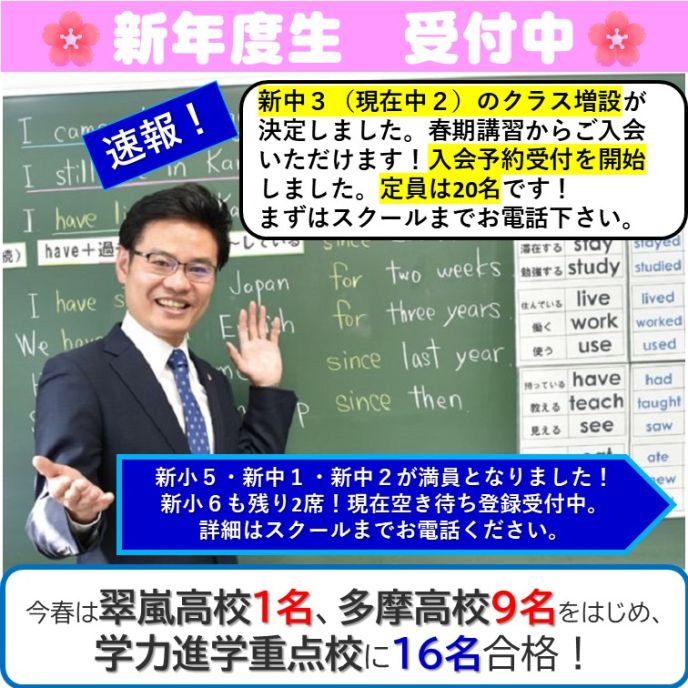 ◆新3年生クラス増設決定!
