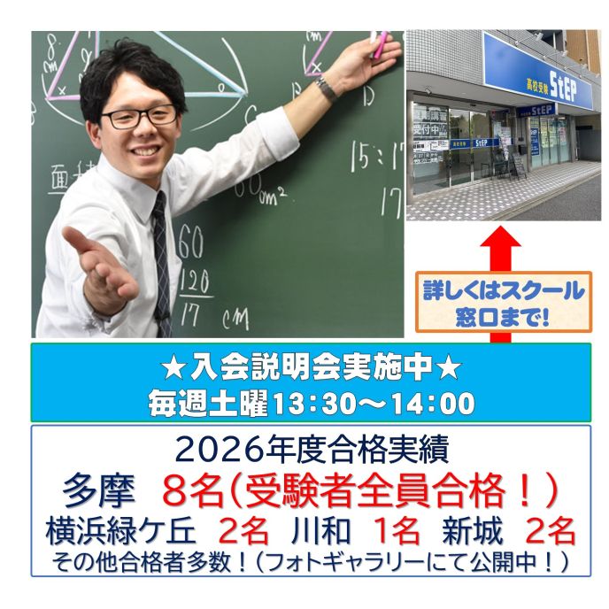 多摩8名(受験者全員合格)、横浜緑ケ丘2名、川和1名、新城2名など合格!