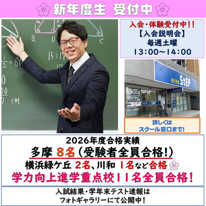 多摩8名(受験者全員合格)、横浜緑ケ丘2名、川和1名、新城2名など合格!