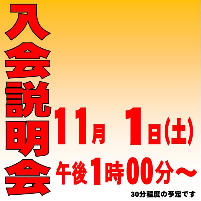 11月7日(金)13:30~ スクール窓口にて