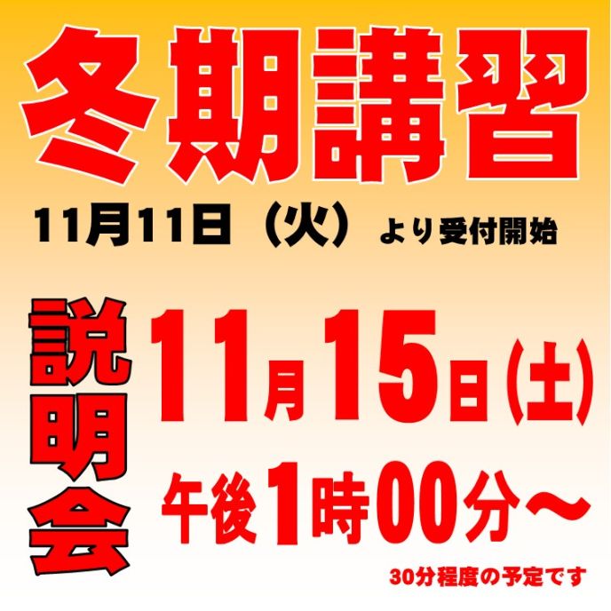11月11日(火)13:30~ スクール窓口にて