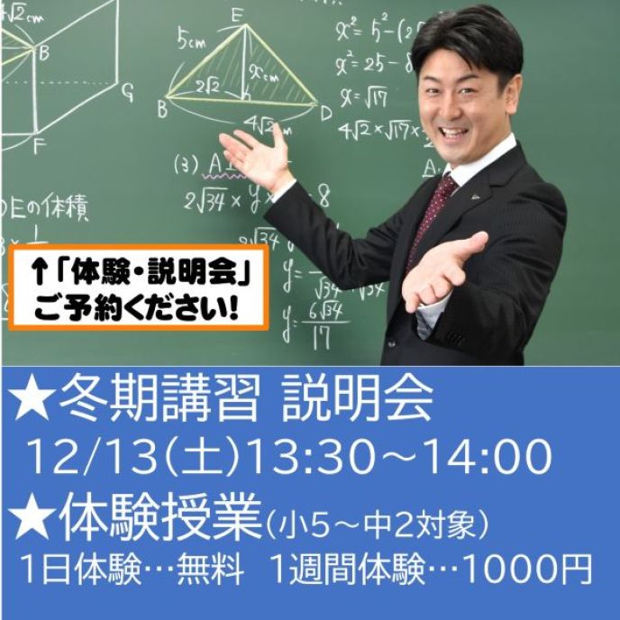 冬期講習(小5~中2)受付中です。スケジュールついて、ぺージ下部のフォトギャラリーに掲載していますので、ご覧ください。