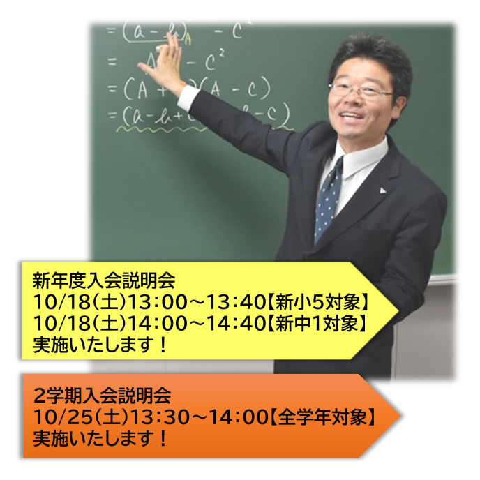 ※10/18(土)は新小5・新中1対象の新年度入会説明会を実施いたします。