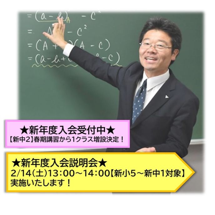 《新小5(現小4)》新年度入会受付中。火木クラス空きあり。水金クラスの算国は満席。