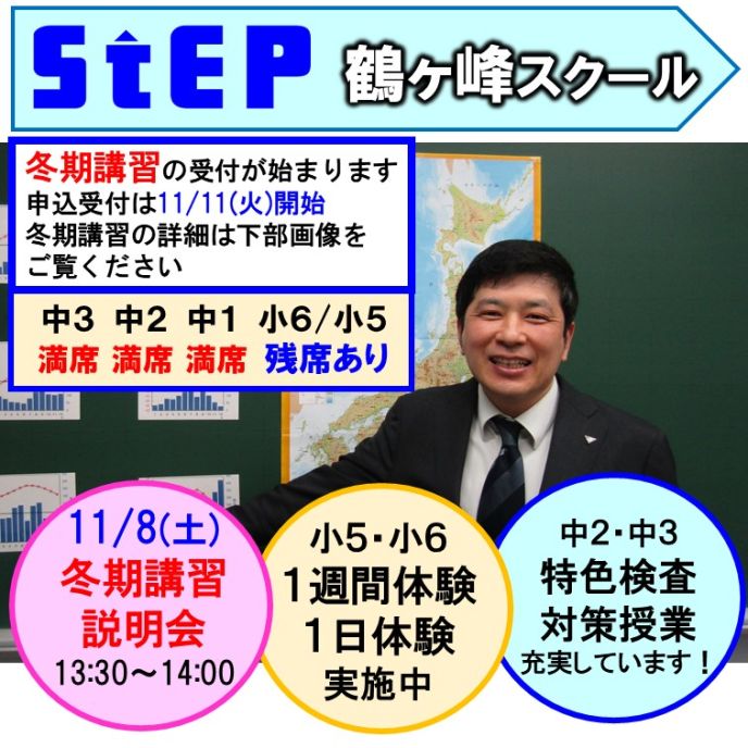 11/11(火)13:30から冬期講習の一般受付を行います。