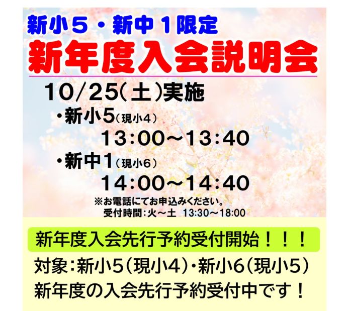 ◆新小5生・新小6生は新年度の入会先行予約を受付中です!