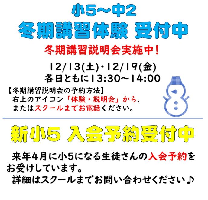 来年4月に小5になる生徒さんの入会予約を受付中です。