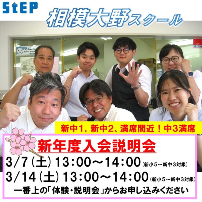 新小5~新中3の方でステップにご入会希望の方、ご興味がある方は、まずは新年度入会説明会にお越しください。