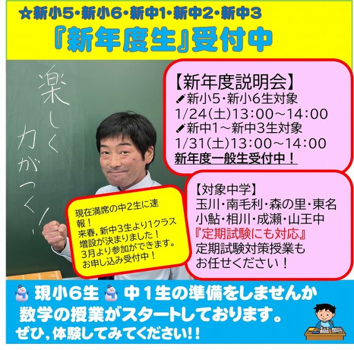 1/24(土)13:00~14:00(新小5・新小6生対象)