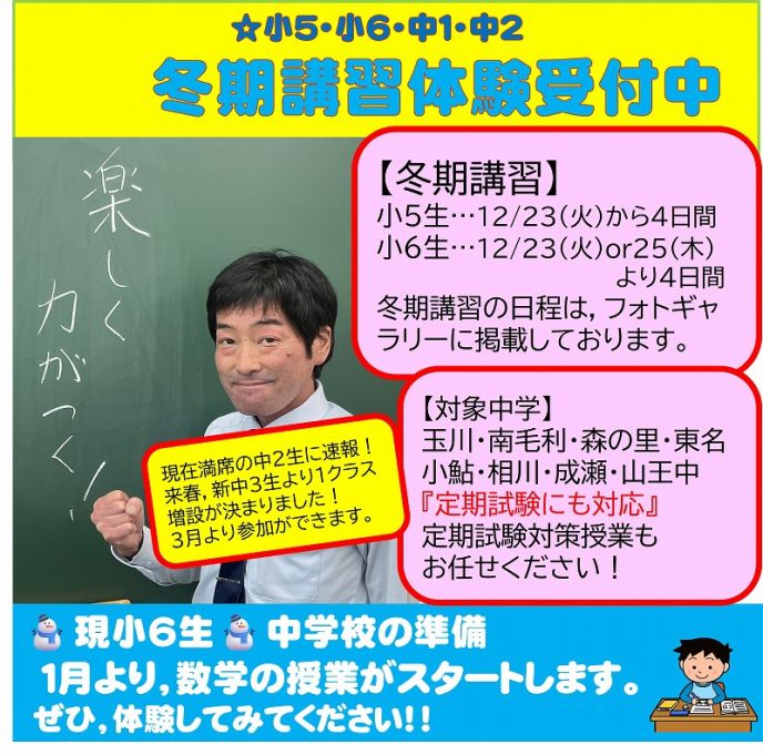 ☆中1生(残席:現在満席)(空席待ち登録ができます)