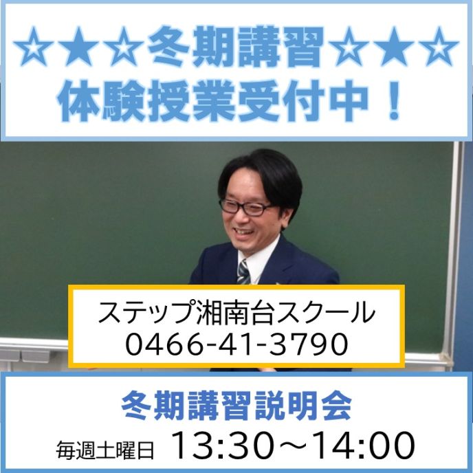 塾を検討されている方、ステップで一緒に頑張ってみませんか? お申込みはスクール窓口にて承ります。冬期講習説明会もございます。ご質問などはお気軽にお電話ください。
